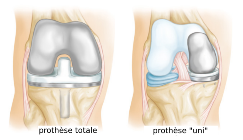 elle remplace un seul compartiment du genou ( le plus souvent le compartiment interne)